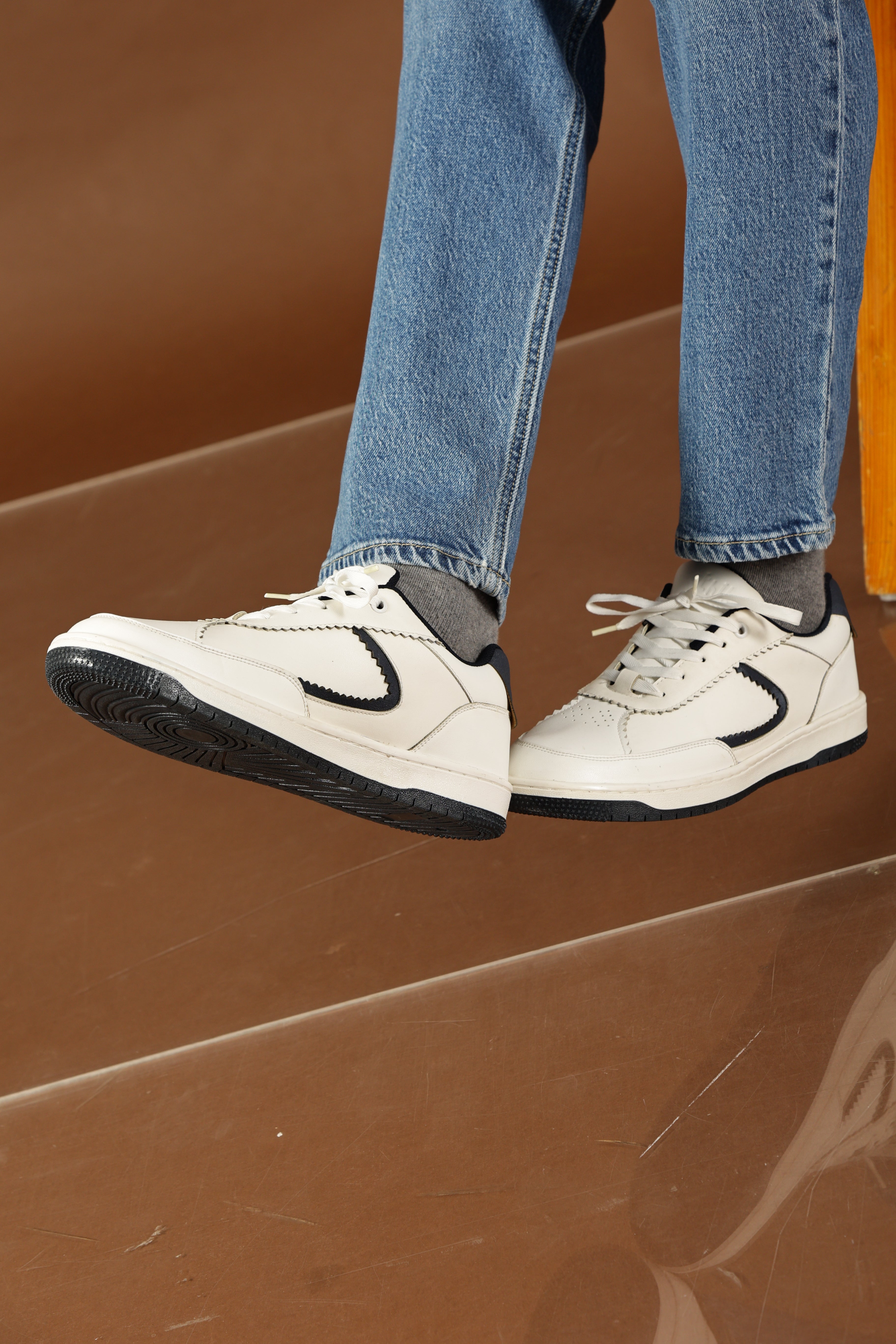 Meet FLAIRÉ Blue, Ethik’s take on everyday white sneakers for men who prefer clean style with a sharp edge. Designed to stand out quietly, this pair features a smooth white upper elevated with a subtle blue zig-zag trim — adding just enough contrast without overpowering your look.