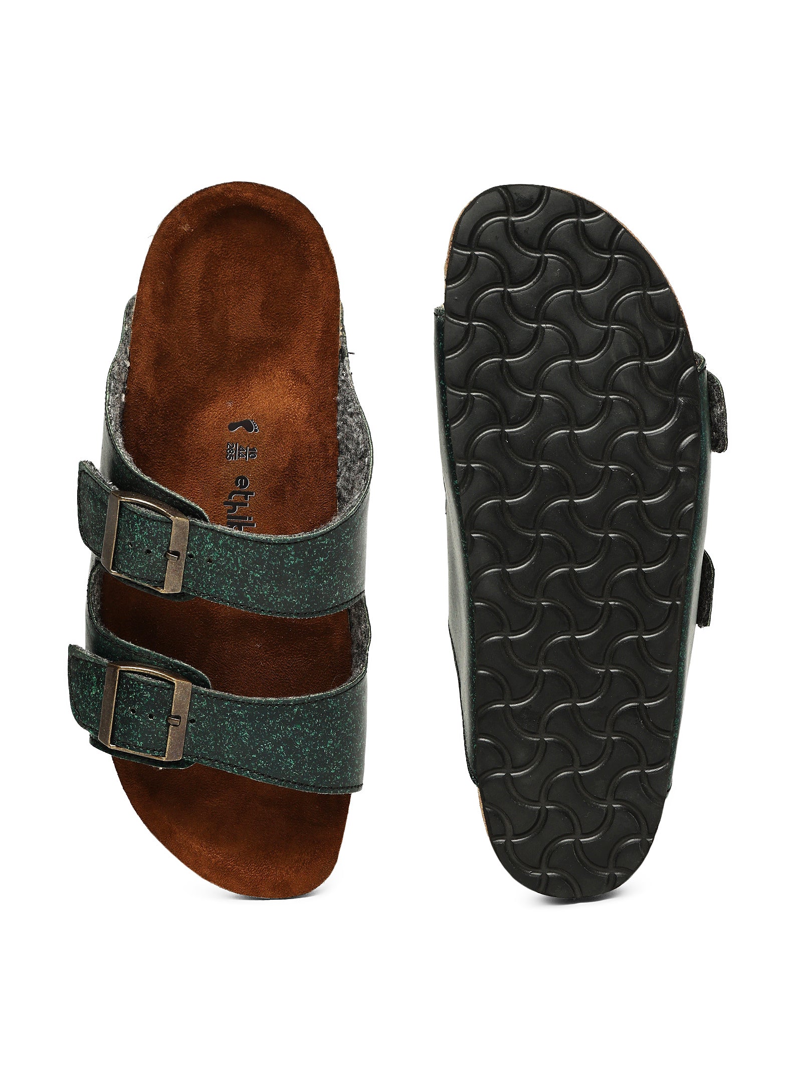 Built with eco-conscious sugarcane fabric, this double-strap open footwear offers a secure, adjustable fit through functional antique brass buckles. The dual-strap construction evenly distributes pressure, delivering enhanced balance and stability throughout the day.