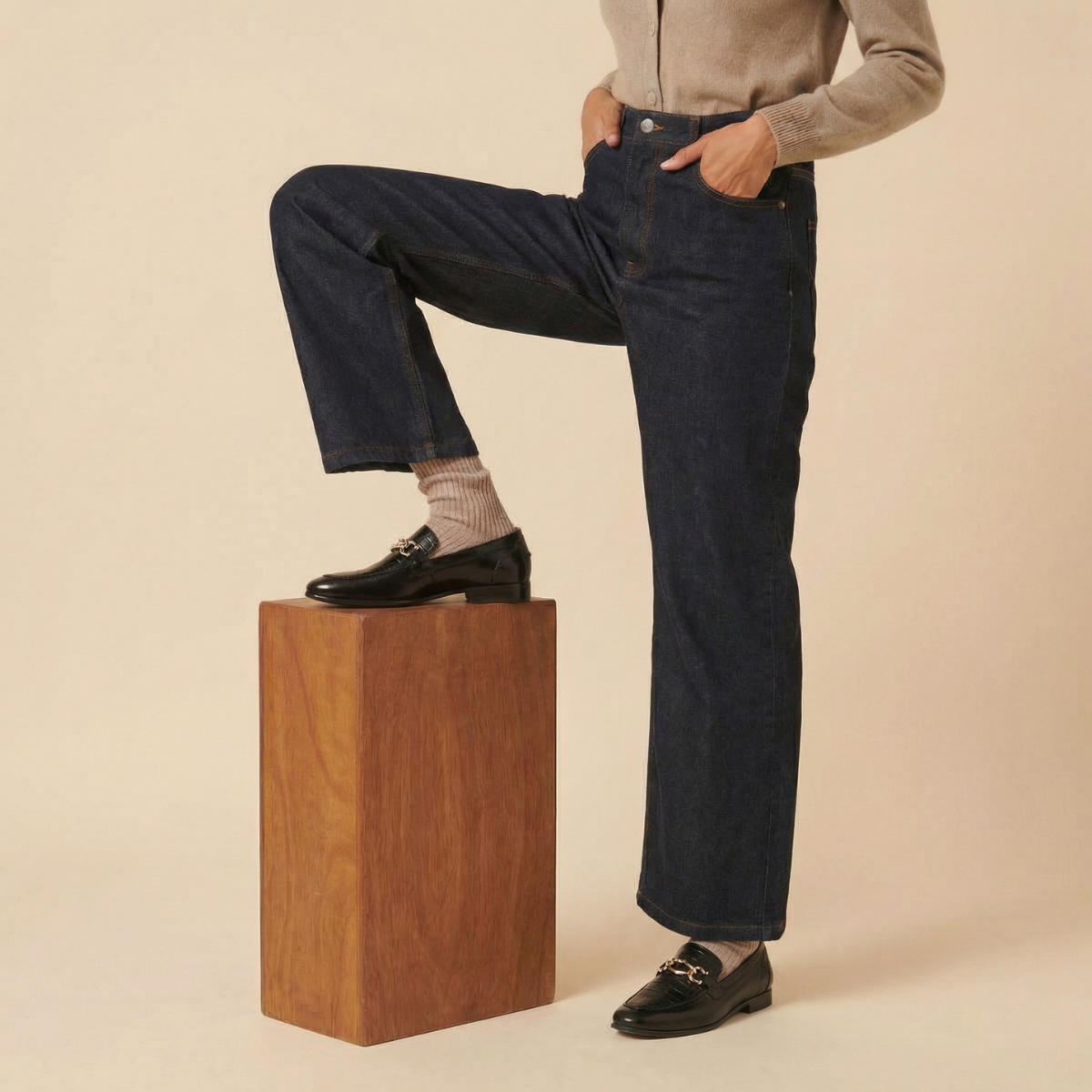 The shoe features a croc-textured vegan upper that adds depth and richness without overpowering the classic form. The gold-finish horsebit buckle introduces a traditional snaffle-bit influence, elevating the shoe with heritage-inspired sophistication.